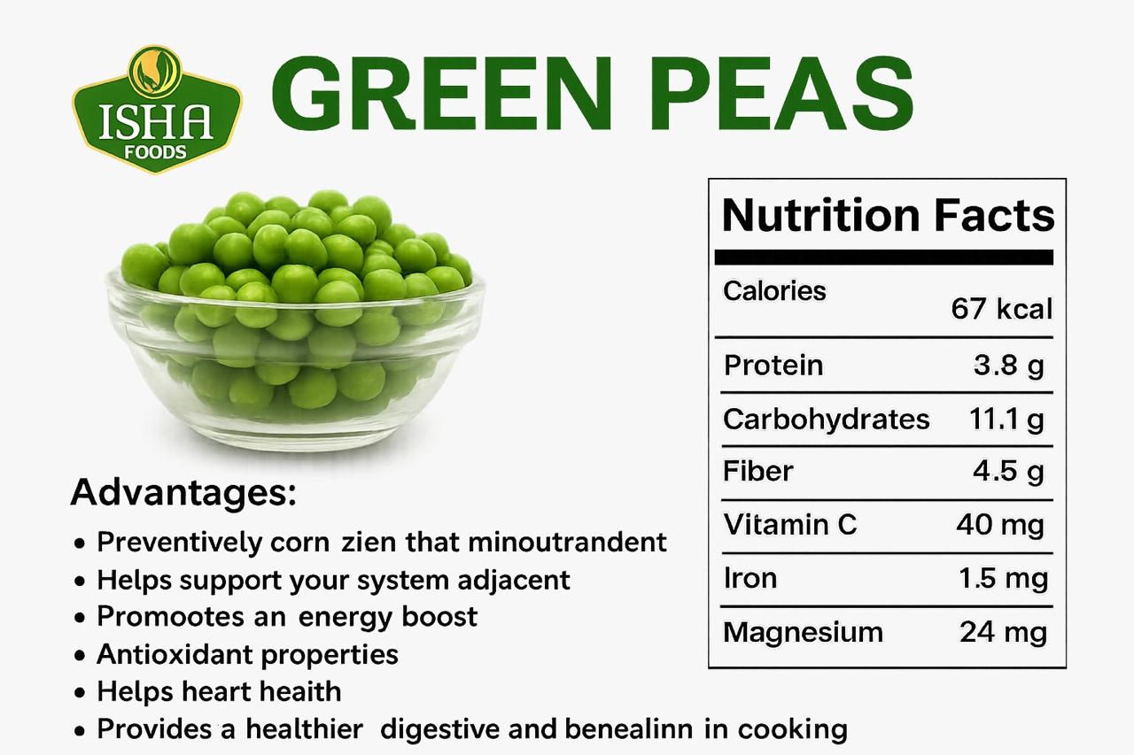 Dried Green Peas are a flavorful pulse that brings sweetness and nutrition to dishes. They are widely used in curries, pulao, chaat, and snacks. Packed with protein and fiber, they add taste and health to every meal.