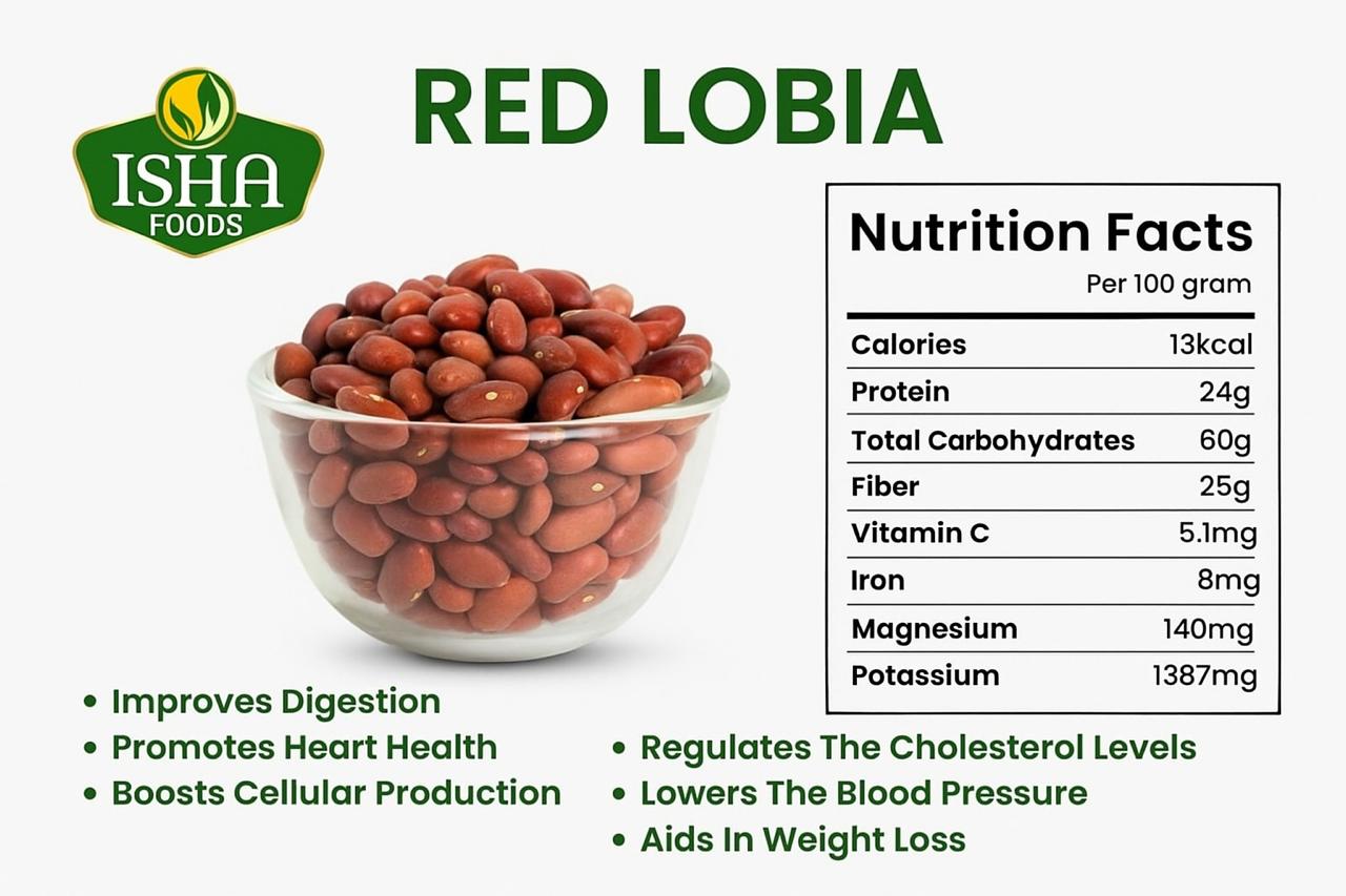 Red Lobia, also known as red cowpeas, is a wholesome pulse rich in protein and iron. It is commonly used in hearty curries, stews, and traditional dishes. A healthy choice for balanced meals, it is both filling and flavorful.